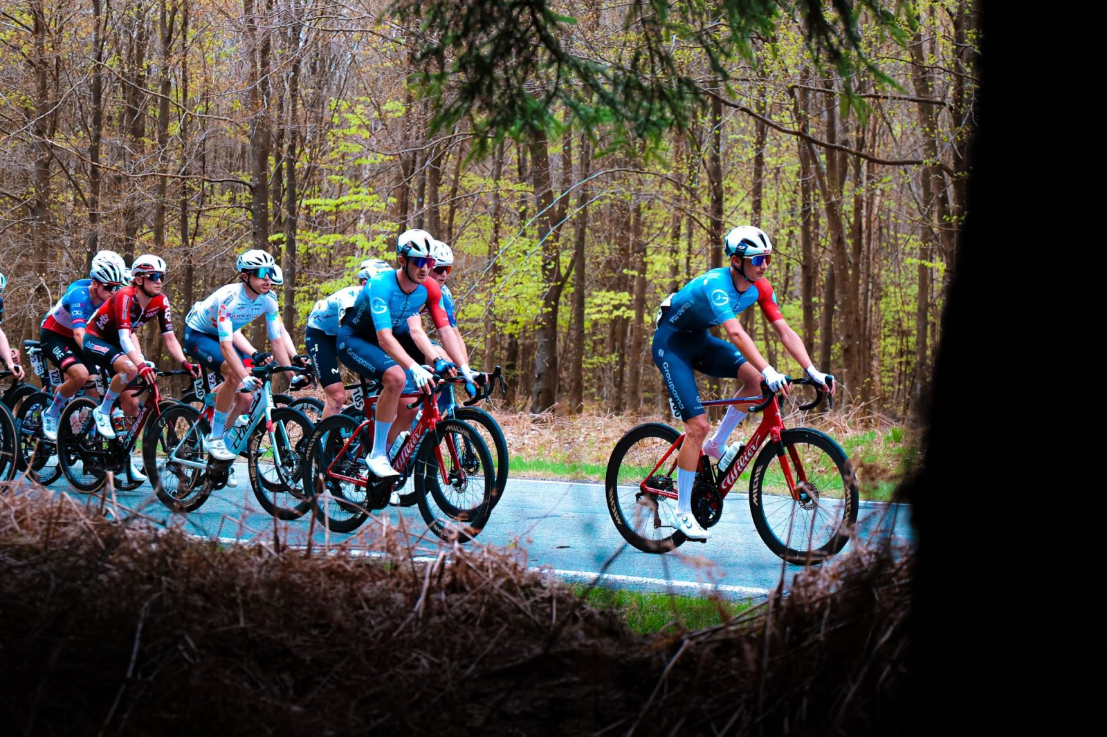 Un peu plus d’une semaine avant leurs aînés, les coureurs espoirs s’attaquaient à leur propre édition de Liège-Bastogne-Liège ce samedi, sur un parcours très vallonné entre Bastogne et Blegny, mais avec un final plus abordable que celui des élites. Située à près de quarante kilomètres du terme, la côte de la Redoute faisait ainsi figure de dernière difficulté majeure sur le tracé. En amont figurait en revanche bel et bien la trilogie « Wanne-Stockeu-Haute Levée », aux environs de la mi-course, et c’est étonnamment une échappée fleuve qui l’a abordée avec deux minutes d’avance sur le peloton. « Il y a eu un premier coup de seize avec Esteban Foucher, c’est rentré, puis au bout de 50-60 kilomètres, un scénario assez étrange s’est développé puisqu’une grosse échappée s’est formée en plusieurs vagues et ils se sont retrouvés à trente-deux devant, précisait Jérôme Gannat. On était pour notre part en très bonne position car on avait quatre coureurs : Rémi Daumas, Eliott Boulet, Yann Dubois et de nouveau Esteban ». Dans cette séquence de côtes, le groupe de tête s’est réduit de moitié, mais « La Conti » conservait toutes ses pièces à l’avant.