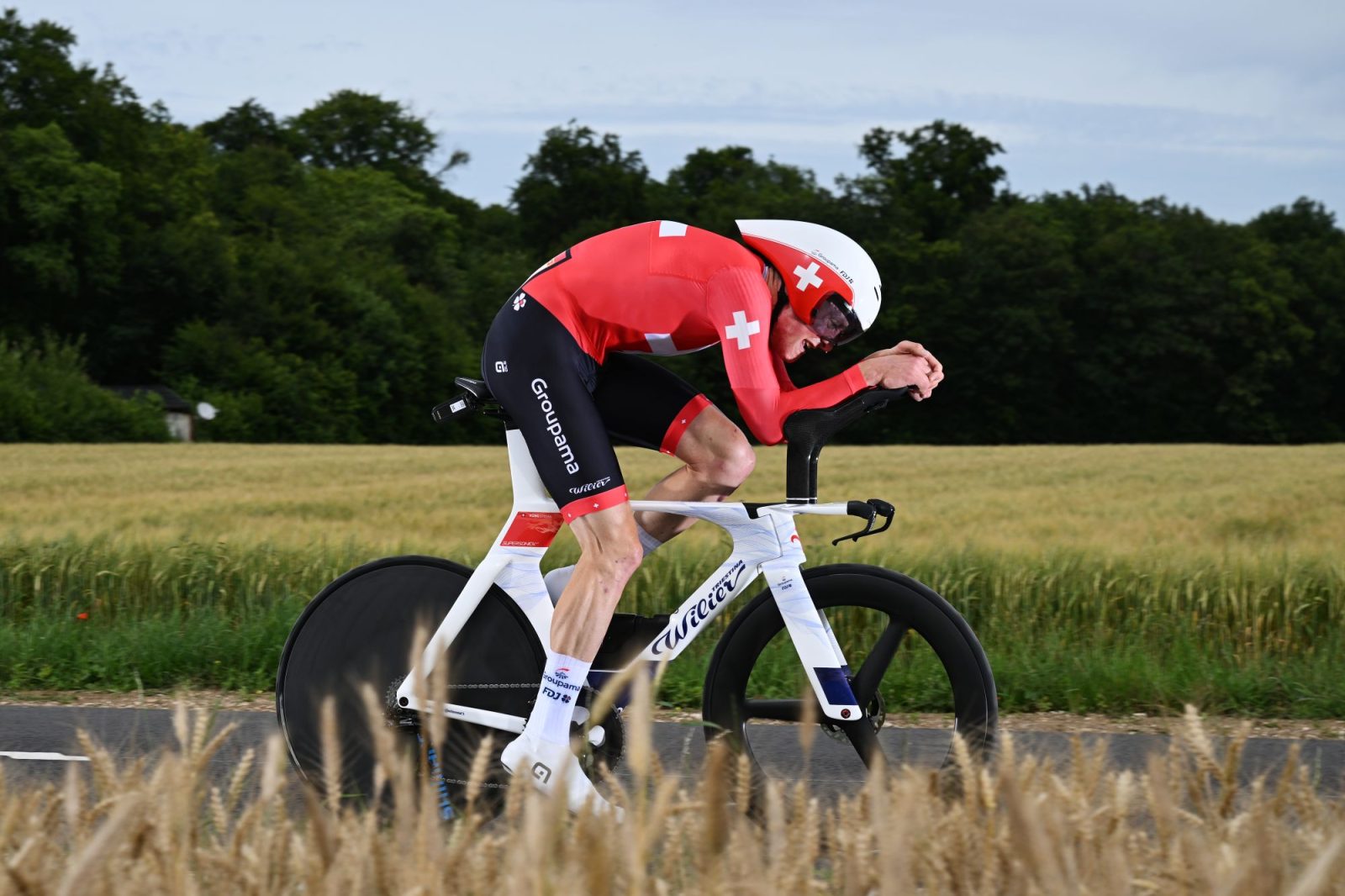 Un rendez-vous capital s’annonçait ce vendredi sur les routes du Tour de France pour les prétendants au classement général. Mais pour Stefan Küng, la septième étape, en forme de contre-la-montre entre Nuits-Saint-Georges et Gevrey-Chambertin, revêtait également une importance toute particulière. Pour sa quatrième sortie sur le Wilier Triestina Supersonica SLR, le Suisse nourrissait de grandes ambitions, malgré un parcours qui avantageait également les favoris. Un peu plus de vingt-cinq kilomètres étaient ainsi à couvrir, roulants au début et à la fin, mais avec une portion ascendante décisive à mi-parcours. Bien avant l’ancien double champion d’Europe, Lenny Martinez a établi une première marque provisoire de référence peu avant 14h, en 31’30. « Je ne l’ai pas fait à fond, confiait le jeune grimpeur. Je me suis simplement pris un peu au jeu dans la bosse, puis j’ai essayé de rouler avec de la vitesse dans le final ». Son acolyte David Gaudu a effectué un chrono relativement similaire aux alentours de 15 heures. « Je suis content des sensations, disait le Breton. Quand j’ai voulu appuyer, j’ai vu que ça répondait. Je ne m’attendais pas à revenir à ce niveau aussi vite. Les deux premiers jours ont été difficiles physiquement après le Covid. L’échappée vers Valloire m’avait rassuré, et aujourd’hui, c’est une petite marche en plus ».