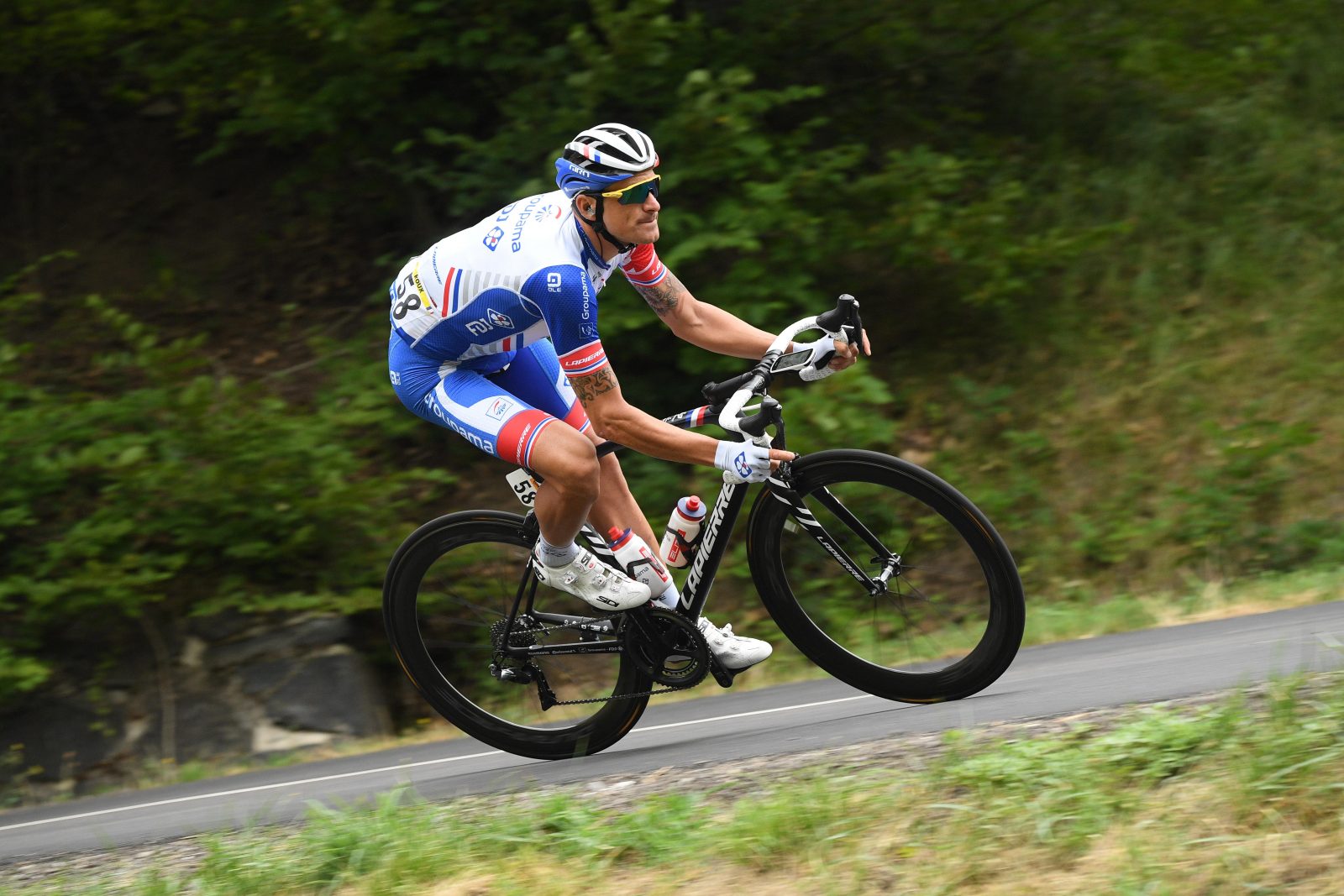 Anthony Roux s’est griffé dans les barbelés, Rudy Molard s’est fait mal à un genou et Ziga Jerman n’a pas pu faire le sprint. Seuls sont passés Miles Scotson et Kevin Geniets. Vraiment on n’est pas verni, tout s’était bien passé jusque-là ! Avant le contre la montre de 23 kilomètres, Miles et Kevin sont dans les temps. Les autres, bien entendu, ont perdu toute illusion et notamment notre spécialiste Anthony Roux… »