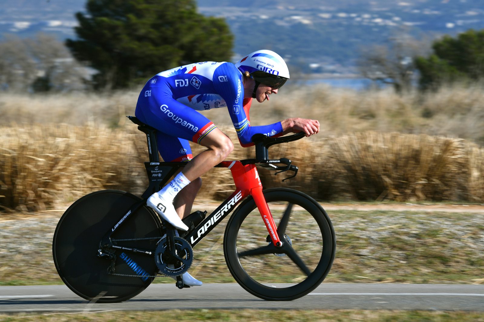 Il y a quelques jours, l’Étoile de Bessèges s’était achevée par un exercice chronométré. Ce jeudi, toujours dans le sud de la France, le Tour de la Provence s’est ouvert avec le même type d’effort, solitaire. En revanche, le parcours n’avait rien à voir avec celui proposé à Alès et sa fameuse côte finale. Aujourd’hui, les coureurs avaient rendez-vous à Berre-l’Étang, dans les Bouches-du-Rhône, pour un circuit très court de sept kilomètres en forme d’aller-retour. « Même si le vent n’était pas très fort, il avait une petite incidence sur le retour puisqu’il soufflait de face et qu’il fallait dans le même temps affronter un faux-plat montant, indiquait Anthony Bouillod, l’un des entraîneurs de l’équipe. Il fallait donc être en capacité de partir vite, mais de pouvoir malgré tout augmenter son niveau de puissance sur le retour, dans cette partie précise, afin de gagner du temps. C’était la chose importante à avoir en tête au niveau de la gestion. C’était également un effort intense en raison des nombreuses relances ». Dans le clan Groupama-FDJ, Anthony Roux a été le tout premier à s’élancer, à 14h38. Il a franchi la ligne huit minutes trente-deux plus tard, en seconde place provisoire. Mais le premier véritable temps de référence a été établi par son coéquipier suédois, Tobias Ludvigsson, une vingtaine de minutes plus tard. Le spécialiste de la discipline a en effet coupé la ligne en huit minutes et dix-sept secondes, lui octroyant la meilleure marque provisoire et lui donnant le droit de s’installer dans le fameux « hot seat » de leader.