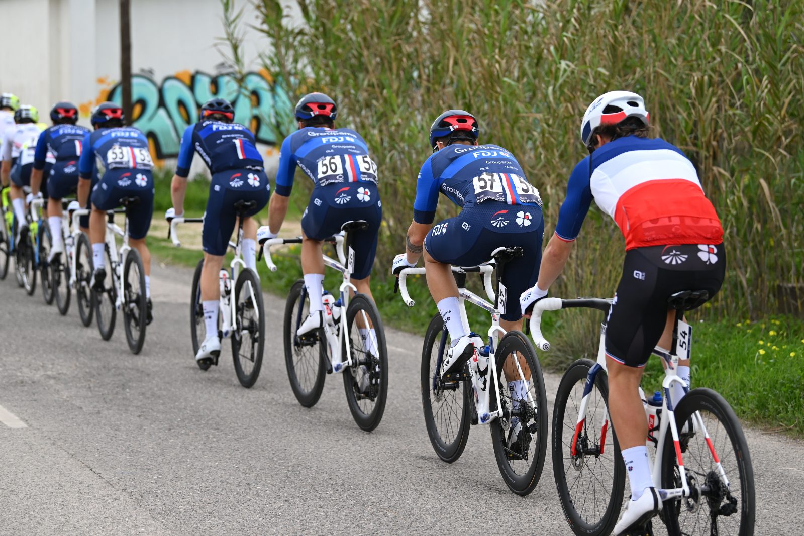 Quelques minutes avant le regroupement, le peloton s’est en revanche scindé en plusieurs morceaux à la suite d’un gros accrochage. « Le final était assez technique, il fallait être prudent sur certains passages et c’était nerveux avec le vent, ajoutait Frédéric. Malheureusement, Valentin a été pris dans une chute et c’est le petit bémol de la journée. Il a subi un petit choc à la cuisse, qui ne semble pas trop grave, mais c’est toujours gênant de tomber ». Après une chasse de quelques minutes, le champion de France est parvenu à réintégrer le peloton, qui a quelque peu levé le pied jusqu’aux cinq derniers kilomètres. Compte tenu du vent de face dans le final, la préparation du sprint s’est enclenchée relativement tard. « C’était plutôt houleux, et ça n’a pas été évident de s’organiser, disait Frédéric. Lewis et Marc ont fait de leur mieux, mais ça n’a pas marché comme on le voulait. Ça s’est vraiment mis en route à deux bornes, dans un faux-plat avant de basculer. Ils étaient un peu loin au démarrage de l’action, et c’est devenu compliqué de remonter tout le monde. On espérait mieux ». Marc Sarreau a finalement coupé la ligne en quatorzième position, sans pouvoir sprinter à proprement parler.