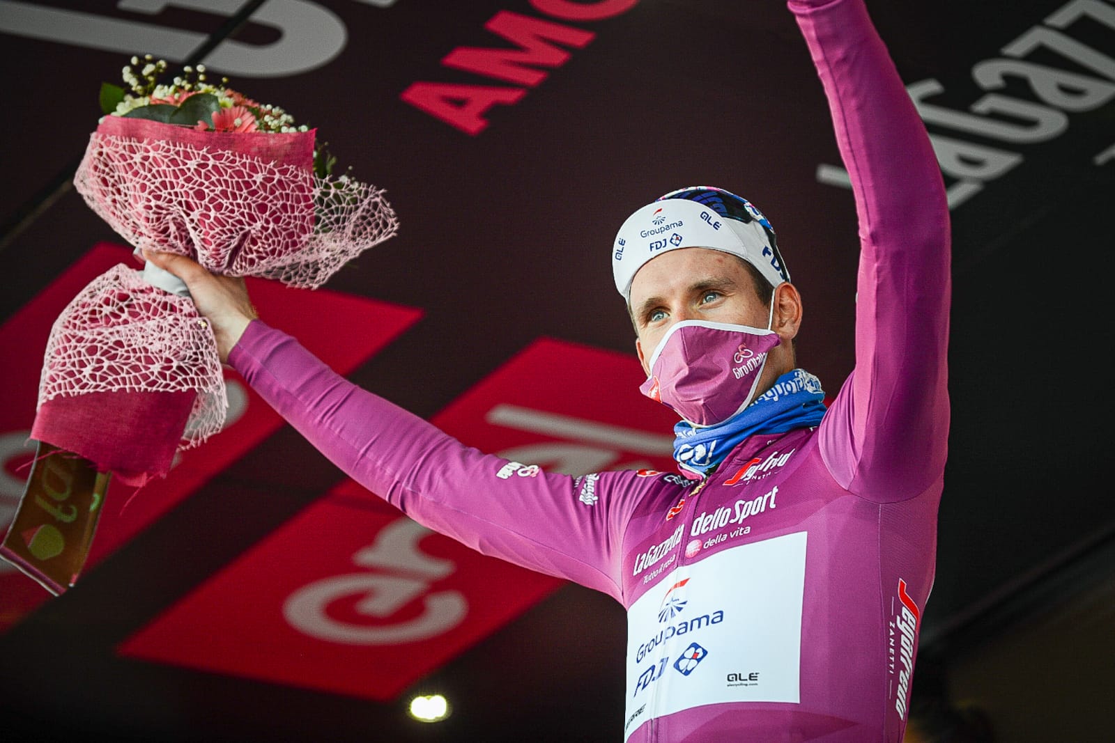 L’espace d’une journée, l’appétit d’Arnaud Démare et de ses coéquipiers a semblé assouvi. Au lendemain de la troisième victoire dans ce Giro 2020 du champion de France, la formation Groupama-FDJ souhaitait ainsi s’accorder une journée « off » à travers les Pouilles, entre Giovinazzo et Vieste, sur près de 200 kilomètres. Alors, quand l’échappée du jour comprenant Simone Ravanelli (Androni Giocatolli-Sidermec), Joey Rosskopf (CCC), Alex Dowsett, Matthias Brändle (beiden Israel Start-Up Nation), Matthew Holmes (Lotto Soudal) et Salvatore Puccio (INEOS Grenadiers) s’est formée après environ trente kilomètres, les coéquipiers du maillot cyclamen sont restés discrets au sein du peloton. « On voulait relâcher la pression aujourd’hui, insistait d’ailleurs Arnaud Démare quelques heures plus tard. Nous avons déjà gagné trois fois, il y a eu une grosse étape de bordures hier, et nous avons mis beaucoup d’implication depuis une semaine. On s’est donc dit : « on débranche et on souffle ». Nous avons vraiment voulu poser le cerveau pour essayer de récupérer ». « On on espérait qu’un maximum de coureurs s’échappent aujourd’hui, précisait ainsi Sébastien Joly. Dans le deuxième cas de figure, où seulement 2-3 coureurs sortaient, on aurait sans doute participé au final. Ils ont finalement été six à prendre les devants et c’était une situation qui nous arrangeait bien ».