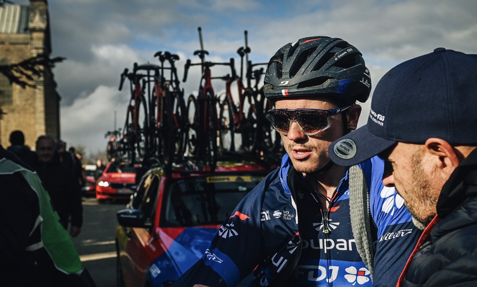 Après le petit coup du sort météorologique lors du contre-la-montre par équipes, David Gaudu et ses coéquipiers espéraient repartir de l’avant ce mercredi lors de la quatrième étape de Paris-Nice. Malheureusement, le destin ne leur a pas davantage souri en direction du Mont Brouilly. Bien en place jusque dans l’avant-dernière montée du jour, le leader breton a en effet été mis hors-jeu après une chute au moment de retirer sa veste. Il n’a dès lors jamais pu rentrer et a concédé près de six minutes à l’arrivée. Le général est désormais hors de portée et de nouveaux objectifs se profilent pour la fin de semaine.