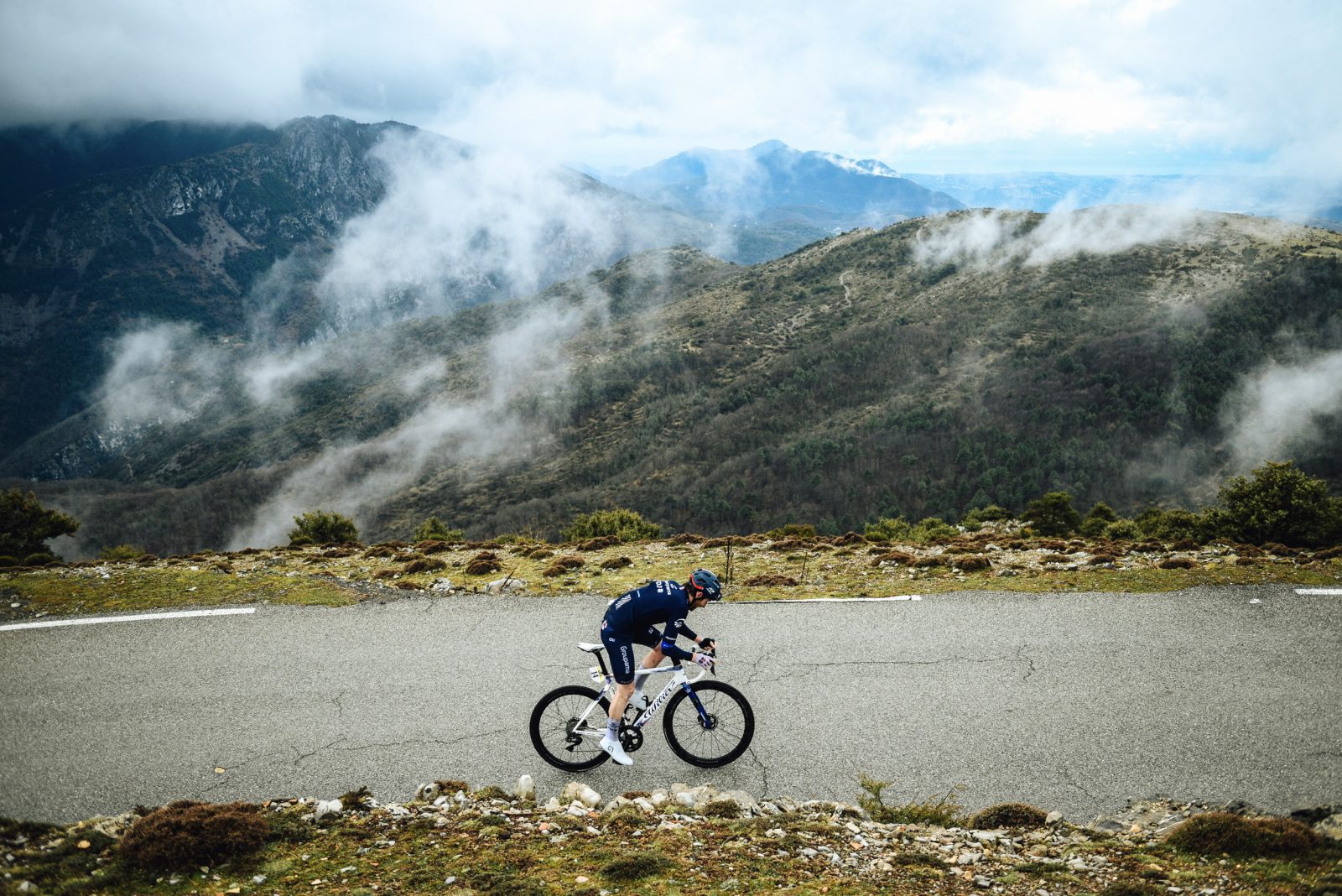 En raison du risque de neige à plus de 1400 mètres d’altitude, les organisateurs de Paris-Nice avaient dû revoir leurs plans plus tôt cette semaine. L’arrivée au sommet d’abord prévu à Auron après la montée de La Colmiane se voyait ainsi substituée par une course de côte vers La Madone d’Utelle (15 km à 5,7%) ce samedi, à la veille de l’arrivée finale. Cette septième étape était également réduite à « seulement » 104 kilomètres, mais ceux-ci se sont avérés particulièrement exigeants compte tenu des conditions climatiques. Alors que Martijn Tusveld, Benjamin Thomas et Johan Jacobs s’en allaient former l’échappée du jour après une poignée de kilomètres, le peloton s’organisait pour une chasse ininterrompue sous la pluie. « Le plan était de mettre Quentin dans l’échappée avec quelques équipiers pour le soutenir, mais certaines équipes avaient d’autres projets, expliquait William Green. Ineos avait une grosse confiance en Bernal et a maintenu l’échappée à 1’30. Le peloton s’est infligé une grosse poursuite ». Sur un parcours scabreux jusqu’à la Madone d’Utelle, il a aussi fallu faire preuve de dextérité.