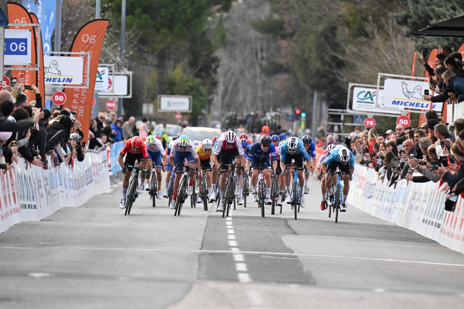 Si le dénivelé positif était légèrement inférieur à celui de la veille, le deuxième acte du Tour des Alpes-Maritimes comportait en revanche des bosses plus imposantes tout au long de son parcours. Le Col d’Èze et le Col de Châteauneuf figuraient ainsi dans les cinquante premiers kilomètres, tandis que la Montée de la Sine s’affichait comme le juge de la paix de la journée, puisque son sommet était situé à seulement trois bornes du but. Le terrain pouvait donc, en théorie, favoriser une course sélective. « Je m’attendais forcément à plus de mouvements dans les cols d’Èze et de Châteauneuf, confiait pourtant Benoît Vaugrenard. Au final, tout le monde s’épiait et personne n’avait vraiment envie de rouler. C’était bizarre ». À l’issue des deux plus grosses difficultés du jour, le peloton était donc encore conséquent derrière une échappée composée de Maxime Jarnet (Van Rysel-Roubaix), Noah Detalle (Bingoal-WB), Axel Narbonne-Zuccarelli, Melvin Crommelinck (Nice Métropole Côte d’Azur), et Matteo Milan (Lidl-Trek Future Racing). L’Équipe cycliste Groupama-FDJ s’est attachée à attaquer les diverses descentes bien placée, puis les attaques se sont succédé dans la montée de Carros, à cinquante kilomètres du but, sans franc succès.