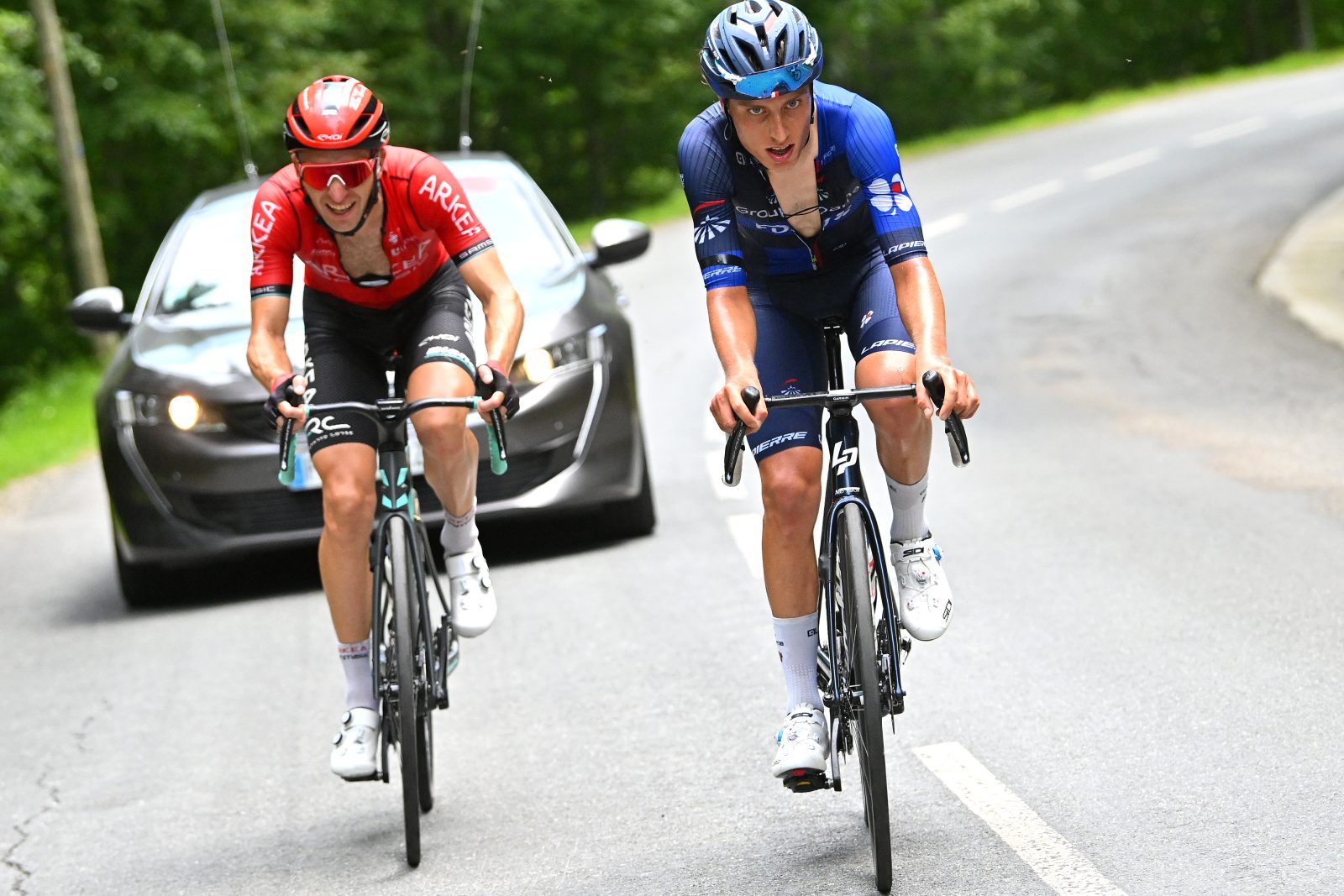 À l’avant, les fuyards ont pu disposer d’une avance maximale de cinq minutes et trente secondes. En revanche, à peine les premiers massifs abordés à la mi-course, cet écart s’est nettement contracté. « Les équipes de leaders voulaient logiquement faire la course et ils ont monté les cols à bloc », témoignait Lorenzo. Dans le Col de Menté, notamment, le peloton s’est d’ailleurs réduit à une quinzaine d’unités, alors que le Transalpin de la Groupama-FDJ demeurait parmi les derniers rescapés d’une échappée émiettée. « Il a été un peu décroché dans le Col de Menté, mais comme il est super bon descendeur, il a réussi à revenir sur l’homme de tête (Sanchez Mayo, ndlr), ajoutait Benoît. Ils se sont retrouvés à deux, ont repris deux minutes d’avance, mais c’était compliqué d’espérer la victoire… » Le peloton a lui quelque peu temporisé et repris de l’épaisseur avant de relancer la poursuite dans les quarante derniers kilomètres. Finalement, Lorenzo Germani et son collègue de fuite ont été repris à quinze bornes du terme, soit au pied de l’ascension finale. « On n’a pas eu beaucoup de marge de manœuvre, mais c’était une belle journée et une belle expérience, qui va me servir pour le futur », glissait Lorenzo. « Il a fait une bonne petite course devant, ça lui a fait plaisir et c’est toujours bon pour lui », confirmait Benoît. À l’arrivée, Michael Woods s’est imposé alors que Lars van den Berg, bien qu’ayant « souffert de la chaleur », a terminé vingt-cinquième.