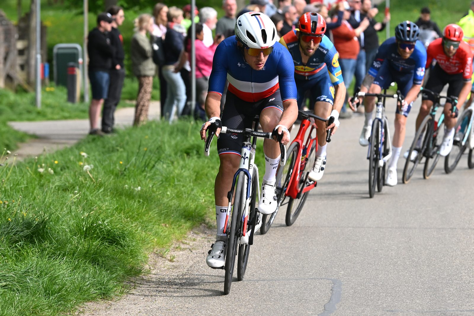 Légèrement distancés dans le Keutenberg, Valentin Madouas et Quentin Pacher ont pu raccrocher le wagon peu après et aborder les vingt derniers kilomètres avec quarante-cinq secondes d’avance sur le peloton. Le Cauberg s’est présenté pour la dernière fois mais n’a pas opéré de réelle sélection à l’avant. En revanche, l’avant-dernière montée répertoriée, celle de Geulhemmerberg, s’est avérée de trop pour le duo français. « J’avais les jambes dures, pleines de toxines, expliquait Valentin. J’essayais de gérer au maximum mais les jambes ont parlé ». Hirschi, Benoot, Vansevenant et Pidcock se sont détachés et ont dès lors collaboré pour éviter le retour de leurs concurrents. En poursuite, les relais ont continué à passer, mais l’écart est passé de dix secondes à dix bornes du but, à vingt secondes à trois kilomètres du terme. Ce n’est qu’à l’approche de la flamme rouge que le groupe de tête a observé une petite temporisation, permettant un léger rapproché des cinq coureurs en contre. « J’ai essayé de ramener Valentin le plus près possible dans la dernière ligne droite pour essayer de jouer la victoire », indiquait Quentin. Il en a toutefois manqué un petit peu pour rebattre les cartes. À l’arrivée, Valentin Madouas s’est donc octroyé la sixième place et Quentin Pacher la huitième au sein du premier groupe de poursuivants. « On a couru comme on voulait courir et on n’avait simplement pas les jambes pour gagner, disait le Breton. Je n’avais pas des jambes extraordinaires, mais pouvoir jouer la victoire et être dans le match est positif. Il y avait quand même un sacré niveau ici, il fallait s’accrocher ».