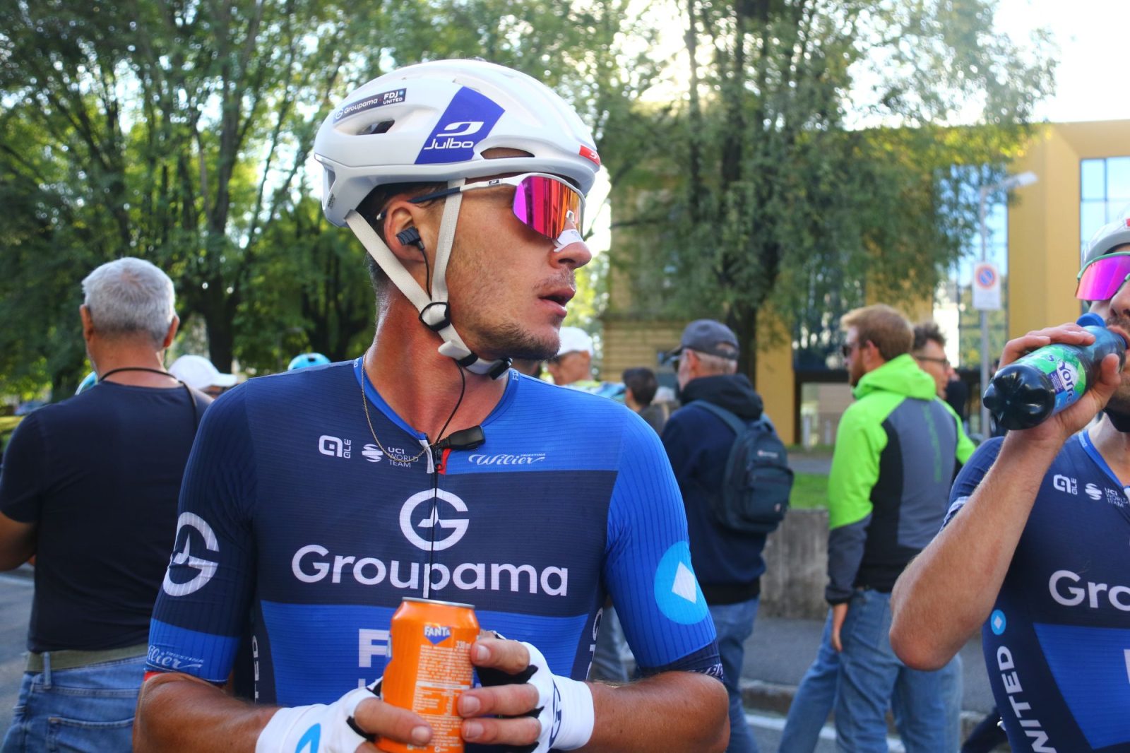 À l’exception des trente derniers kilomètres, c’est une véritable journée « montagnes russes » qui se profilait pour le peloton ce dimanche sur la Coppa Agostoni. Après tout juste dix bornes « en ligne », il fallait ainsi effectuer quatre boucles de vingt-huit kilomètres comprenant l’enchaînement direct du mur de Sirtori (1,5 km à 5,7%), du colle Brianza (3,6 km à 6,4%) et de la montée de Lissolo (2 km à 6,7%). « Dès qu’on est arrivé sur le circuit, c’était montées/descentes en continu, insistait Yvon Caër. Il se trouve qu’UAE Team Emirates avait décidé de ne pas contrôler aujourd’hui mais plutôt de faire la course. Ils ont mis un gros coup de force assez tôt, que Rémy a réussi à suivre ». Après de premières offensives neutralisées, Rémy Rochas a vu sa belle activité être récompensée en accrochant une grappe de six échappés, qui s’est étoffée à dix-sept à l’issue du premier tour. « Rémy était désigné pour suivre les premières vagues, reprenait Yvon. Lorenzo l’était également, et il est sorti en chasse avec deux coureurs. Ça ne s’est pas trop entendu, il s’est retrouvé seul, il est revenu à vingt secondes, mais il n’est jamais rentré. C’est dommage car le final aurait pu lui correspondre, et c’était un peu juste pour nous de n’avoir qu’un seul coureur devant ».
