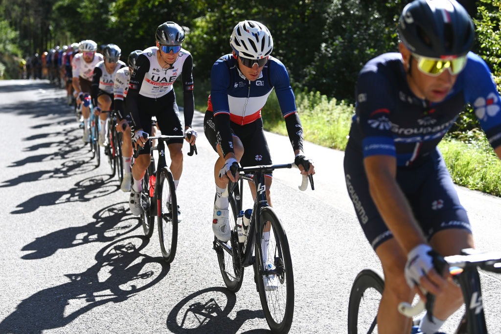 Cent-soixante-dix-sept kilomètres restaient à parcourir ce dimanche sur le Tour Luxembourg, et quelques difficultés demeuraient sur la route des coureurs en direction de la capitale du pays. Près de 3000 mètres de dénivelé étaient d’ailleurs répertoriés, pour une journée qui pouvait encore changer la donne au classement général. Pour autant, la bagarre en début d’étape a été très intense pour intégrer l’échappée, qui semblait aussi avoir ses chances. Ce n’est donc qu’après soixante bornes qu’un solide groupe de onze hommes a donc pu ouvrir une mini-brèche. En tête, Julian Alaphilippe, Andrea Bagioli, Victor Campenaerts, Krists Neilands, Will Barta, Magnus Cort ou encore Marco Haller n’ont ainsi pu disposer que de deux minutes d’avance au maximum. Le peloton, au sein duquel figuraient les quatre coureurs de la Groupama-FDJ, a très vite stabilisé l’écart à tout juste une minute. « On avait pris le parti de ne pas prendre l’échappée, assurait Thierry Bricaud. On savait qu’il y aurait une bagarre pour le général, qui se jouait à coups de secondes, et que le final était difficile. On avait décidé de tout miser sur Valentin, et surtout sur Kevin, en vue du circuit final ». Celui-ci a été atteint à une trentaine de bornes, et trois boucles de douze kilomètres incluant deux courtes montées étaient alors à couvrir. Après une longue course-poursuite, le regroupement inexorable a eu lieu à vingt-six bornes du but. Dès lors, plusieurs offensives ont émané dans le peloton et Kevin Geniets a tenté de se joindre à elles. Le Luxembourgeois a ainsi intégré un premier échelon, duquel sont ensuite ressortis deux hommes : Richard Carapaz et Alexis Guérin.
