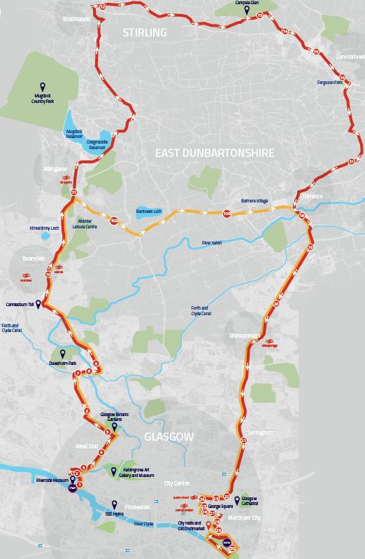 Le Championnat d’Europe de contre-la-montre se déroule à Glasgow, le mercredi 8 août à travers la campagne écossaise, avant de terminer dans Glasgow même.