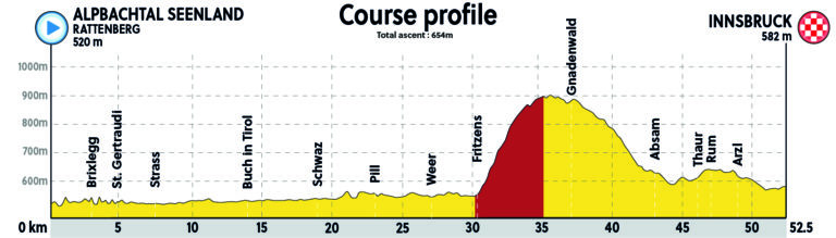 Les Championnats du monde de contre-la-montre individuel se déroulent cette année en Autriche, entre les villes de Rattenberg et Innsbruck. Les coureurs doivent parcourir un total de 52,5 km.