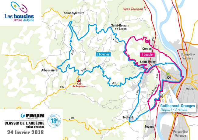 Disputée le samedi 24 février 2018 dans le cadre des Boucles Drome Ardèche, la 18ème édition de La Classic Sud Ardèche prend une nouvelle fois son départ depuis Guilherand-Granges. Cette année la course est marquée par la mise en place d’un nouveau parcours. Les éléments qui ont fait le succès des éditions précédentes restent cependant au programme avec les coteaux de Cornas et l’ascension du Val d’enfer dont le sommet est situé à moins de 5 km de l’arrivée.