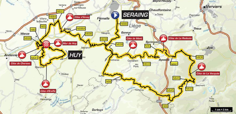 Le parcours de cet édition sera long de 198,5 km. Le départ sera donnée à Seraing, et l’arrivée se disputera dans le Mur de Huy.