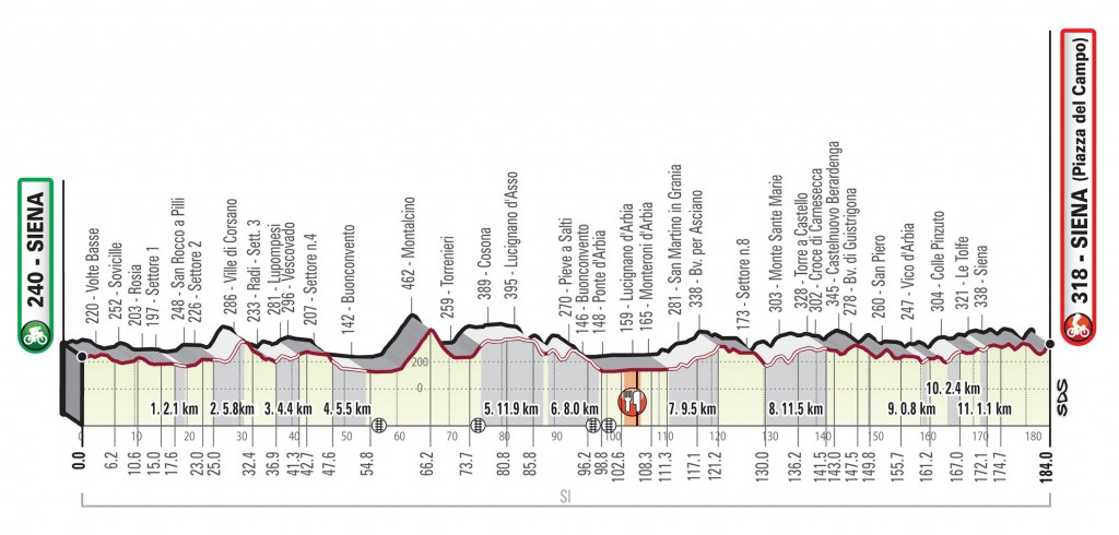 Cette course est caractérisée par ses 50 kilomètres environ sur 200 de routes en terres « blanche » d’où le nom de l’épreuve.