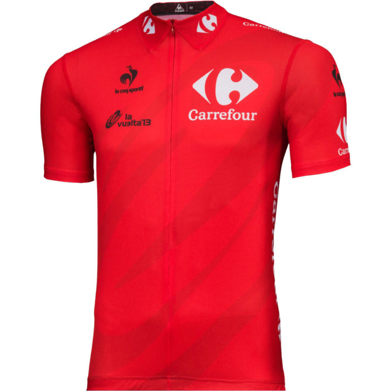 Le maillot rouge est le maillot du leader du classement général au temps. Il est l’équivalent du maillot jaune sur le Tour de France. Il est parrainé par Carrefour. Nairo Quintana (Movistar) remporte le maillot rouge en 2016.