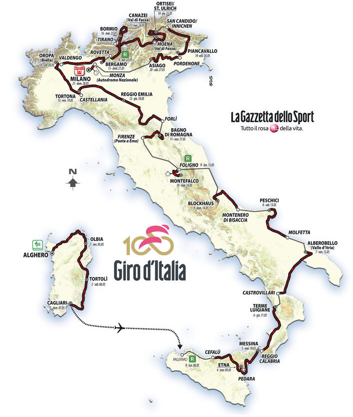 Cette année 2017 marquera le 100ème anniversiare du Tour d’Italie.