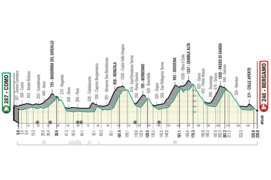 Sur cette édition 2021, les coureurs commenceront dans la ville de Côme pour rallier Bergame, 239km plus loin.