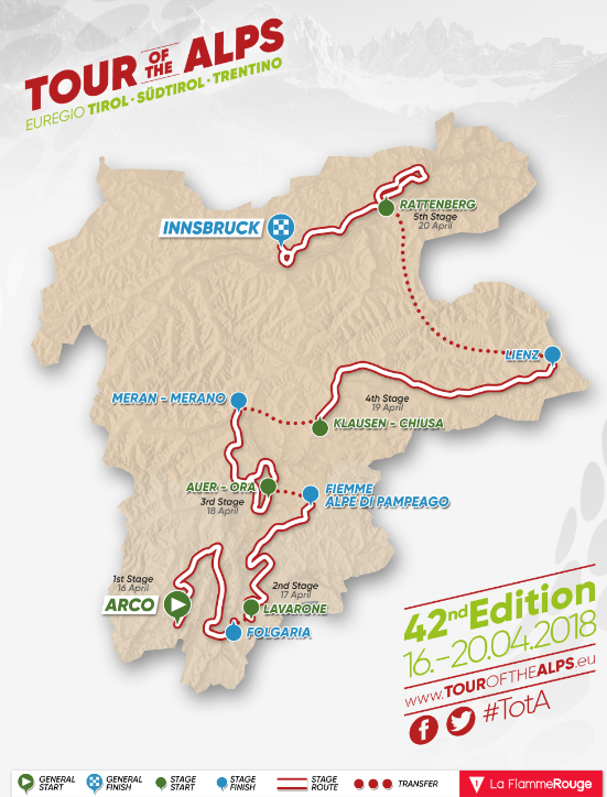 Le Tour des Alpes est une course de 5 étapes qui se déroule en Italie et en Autriche. Cette épreuve est inscrite au calendrier de l’UCI Europe Tour, en catégorie 2.HC. Avec ses parcours vallonnés elle est favorable aux grimpeurs et est également une excellente préparation au Tour d’Italie, qui débutera en mai.