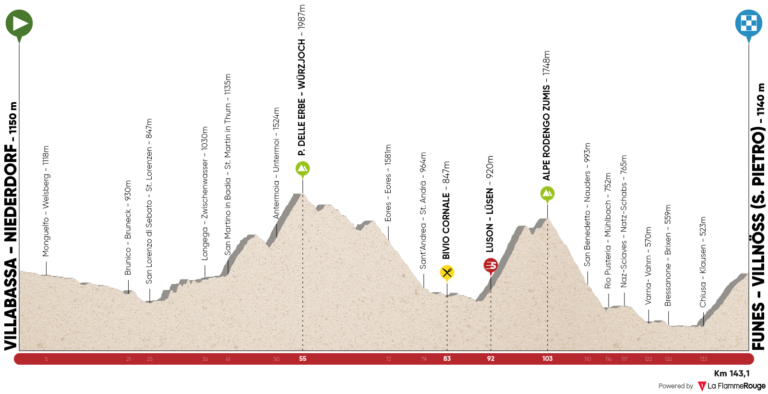 Etape 3 – 19 avril: Villabassa – Nierderdorf > Funes – Villnoss (143.1 km)