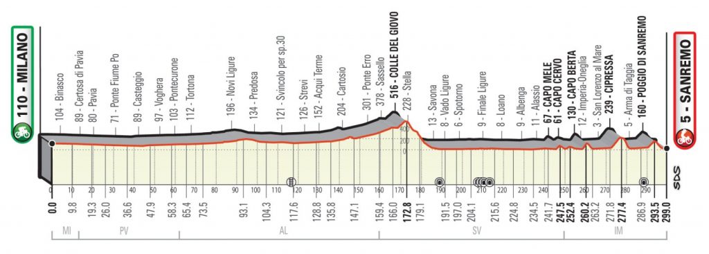 Milan-San Remo is considered as a sprinter’s classic because of its relatively flat profile..