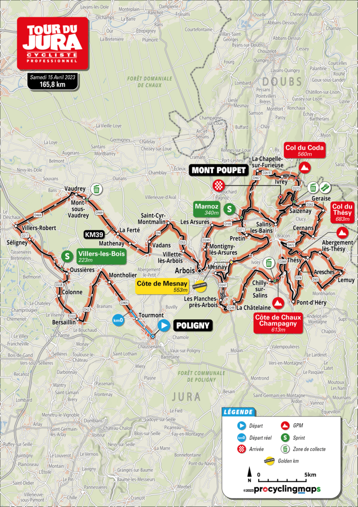 The riders will start from the city of Poligny before completing 165.8km on a parcours full of mounts for a final climb at the Mont Poupet.