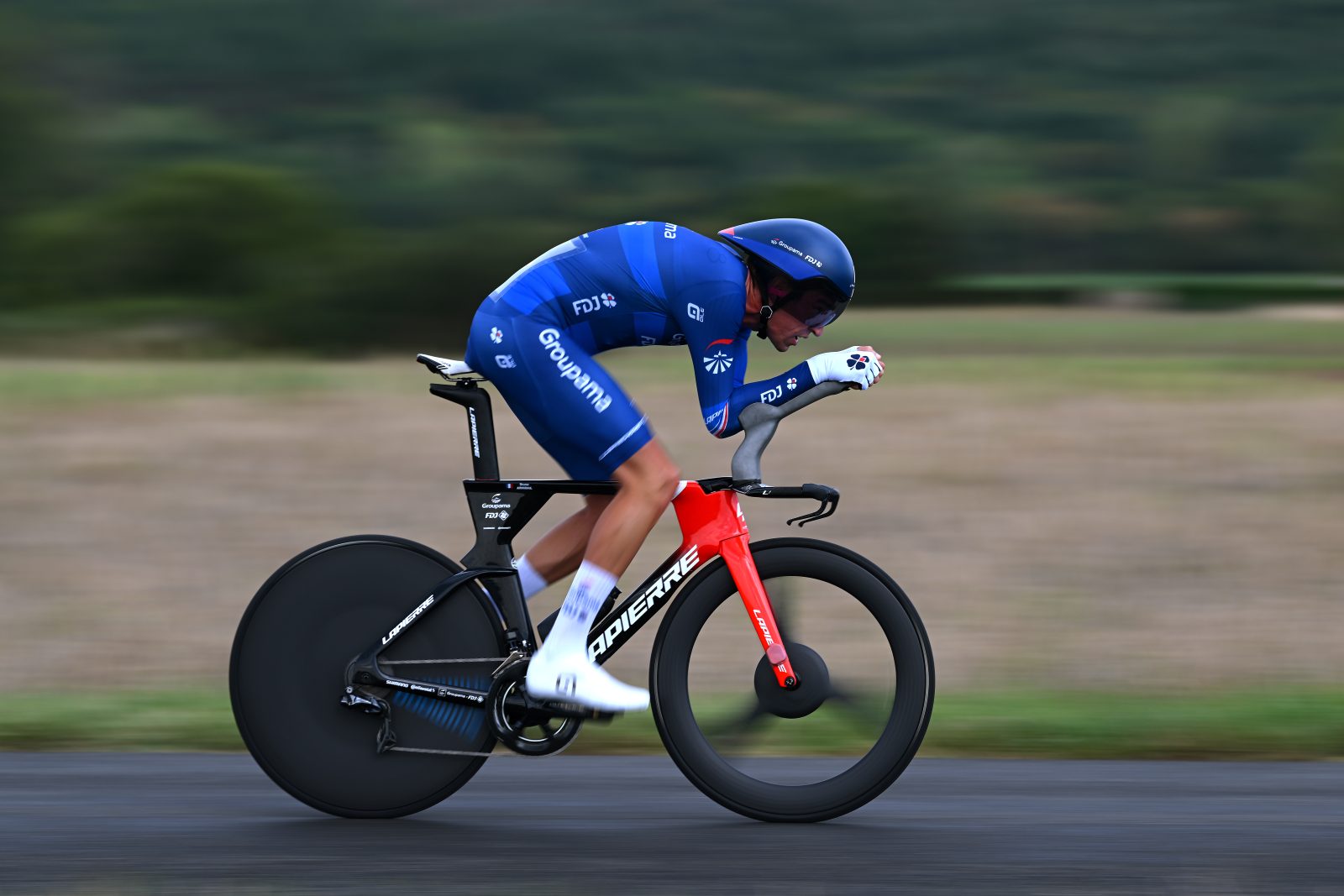 In the aftermath of his victory, the 21-year-old therefore settled for fourth place but still kept the leader’s jersey before the time trial planned in the afternoon. The 22,1-kilometre race against the clock around La Roche-Posay was set to turn the overall upside down. “It was a real time trial for specialists, on good roads”, explained David Han, coach of the team and of Bruno Armirail in particular. “Basically, it was straight roads of seven kilometres. It was a little harder on the second part with a small climb, then there was a long false-flat downhill on the last part”. Starting quite early, Enzo Paleni set the third provisional time and then kept his place in the top-10 for a long time. At 4:27 p.m., Bruno Armirail showed up on the launch pad as a favourite. “For a week, I had been telling him that he couldn’t aim for anything other than winning, given his level and how the team has been committing with him in the discipline for years”, explained David. “Regarding the race plan, we got a bit in trouble with the wind. There were heavy thunderstorms in the late morning, rain in the early afternoon, and there weren’t two similar forecasts. We had two scenarios depending on the wind direction, but we saw quite early on that the ranking at the intermediate check was more or less the ranking at the finish”.