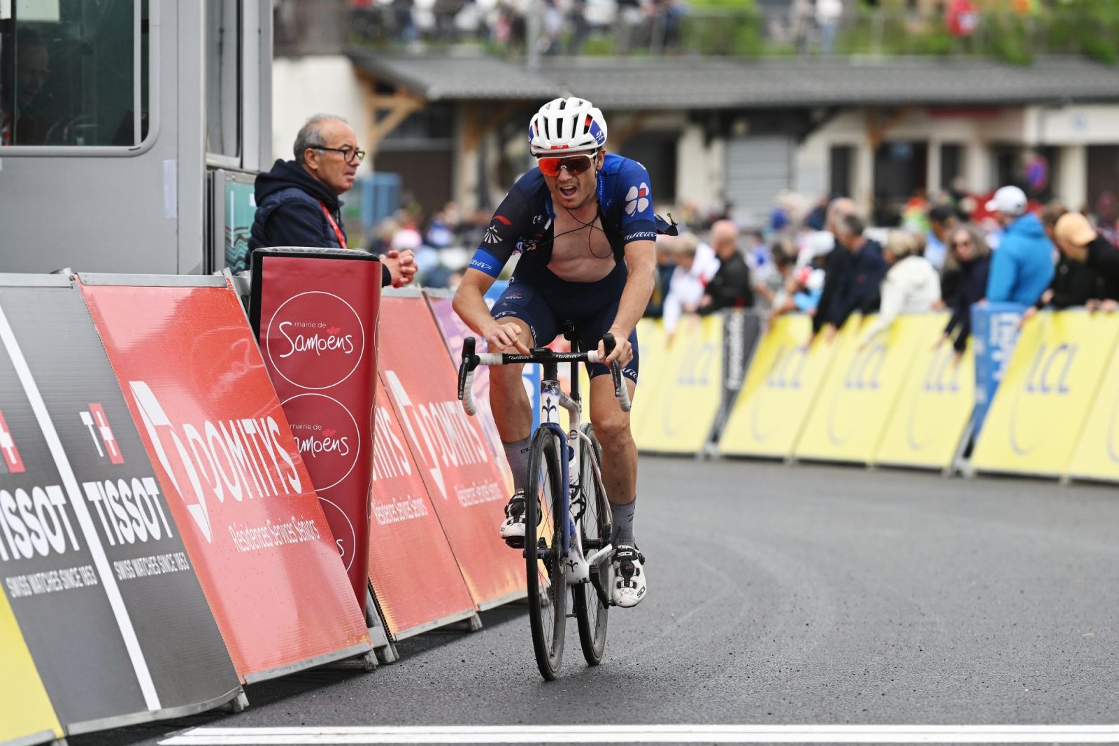 Together with Marc Soler, Lorenzo Fortunato, Davide Formolo or Guillaume Martin, Kevin Geniets gained up to 4’30 at the head of the race. The Col de la Ramaz (14 km at 7%) then came with about fifty kilometres to go, and after a few minutes, the breakaway split apart and Marc Soler went alone. Kevin Geniets was distanced and got back into the bunch after the summit of this penultimate climb. “Overall, I am satisfied,” he added. “I think I didn’t eat enough. It was a small mistake, but we are on the right track towards the next goals. The primary objective was to get back into racing rhythm after my long break and my broken hand. It will definitely come back, and I was able to help in the most important stages.” In the valley leading to the climb of Samoëns 1600, David Gaudu could still count on his four teammates still in contention, since Clément Russo didn’t start today due to Thursday’s crash. The peloton tackled the final climb four minutes after Marc Soler, and therefore did not lose time. From the bottom, a high tempo was set, and the yellow jersey group reduced significantly.