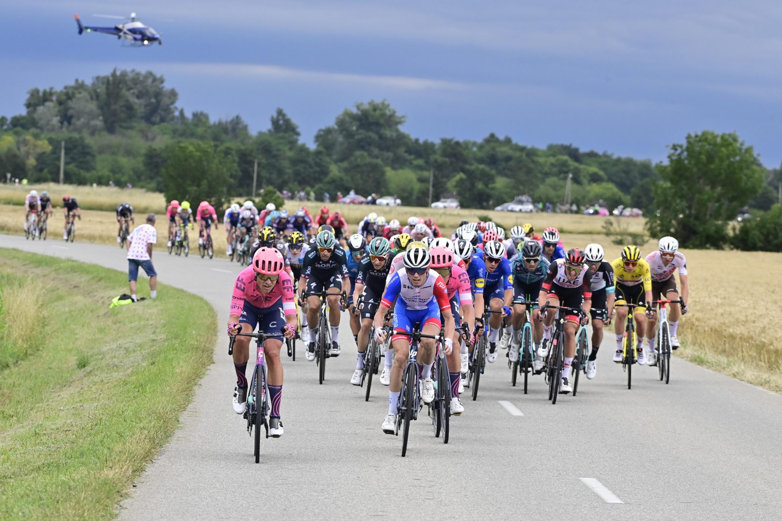 After the intermediate sprint, the bunch even got back just two minutes behind the leading duo, and then maintained a good pace alongside the Vercors massif. The tension only increased in the last sixty kilometres as the sky became more threatening and with a last climb to tackle. “We expected some wind in the valley on the final, and the pace started to pick up in the small climb forty-five kilometers from the finish,” said Stefan Küng, always on David Gaudu’s side. “BikeExchange made a strong pace there, but they didn’t have anyone else to pull after the top so it calmed down. With David, we stayed at the front so as not to be caught up. It was close at one point, but we were still very focused and always in the front. It was important to stay in the first positions because it got really stretched a few times. We did well”.