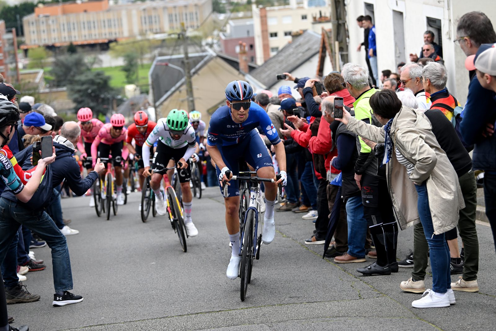 Like last season, the Région Pays de la Loire Tour was set to be decided in Le Mans, on a quite explosive ten-kilometre circuit, to be covered six times, and which the peloton reached after 120 kilometres of racing. After the start of the stage was blocked due to the bonus sprint located after fifteen kilometres, a breakaway of five men then managed to establish with Mark Stewart (Corratec-Vini Fantini), Clément Alleno (Burgos-BH), Paul Hennequin (Nice Métropole Côte d’Azur), Norman Vahtra (Van Rysel-Roubaix) and Julien Matisse (CIC U Nantes Atlantique). Throughout the first half of the course, their lead was maintained around four minutes, and they entered the final circuit including the famous Côte de Gazonfier (300 metres at 15%) with a similar gap. Within the peloton, Matt Walls led the way with Sam Watson right away. “For us, nothing was done overall, and so we had the plan to race for GC and we wanted to make the race hard on the circuit,” explained William Green. “We didn’t want to wait until the last lap, so in the first two, we raced aggressively with both Matt then Ronan [Augé].” In the first lap, the rider from “La Conti” followed a move, and he did it again a lap further.