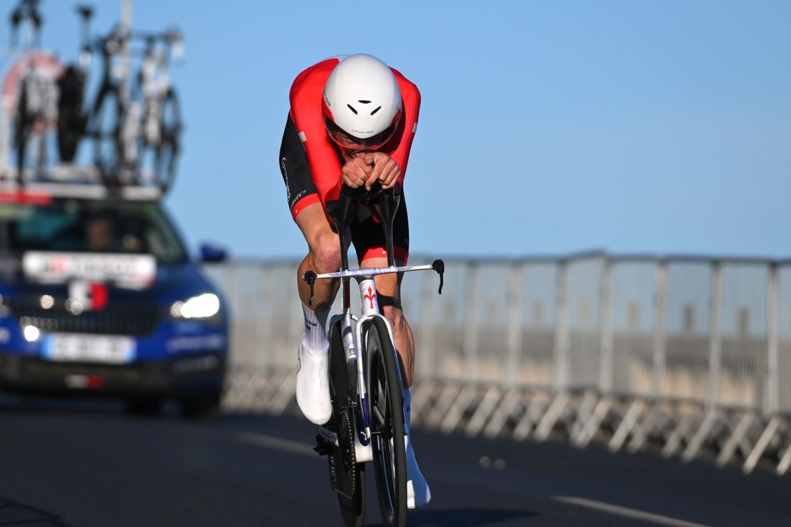 Affini was beaten shortly after by Mathias Vacek. When he left the start ramp at 8:08 p.m, Stefan Küng therefore had to go faster than the Czech rider. After seven kilometers, the Swiss specialist, however, was seven seconds behind, after a hectic start. “I had really crazy gusts of wind in the first half, and they kind of destabilized me,” explained Stefan. “I had trouble staying upright, keeping the position, and it was difficult to pedal against the gusts and keep the rhythm. Honestly, I was scared sometimes, especially on the downhill after the little climb. I was going 77 km/h and I was just praying that nothing would happen.” “The gusts were impressive,” confirmed David. “We got quite scared behind Stefan on one occasion. He was destabilized and I think that disturbed him a little in the first part.” In the last five kilometres, the former double European champion managed to gain a few seconds, but it was not enough to take the hot seat. With a time of 12’41, he set the second provisional mark, four seconds behind Vacek. “I heard that I was behind at the intermediate point, so I really hit the gas,” he said. “I didn’t want to have any regrets, and I don’t have any.”