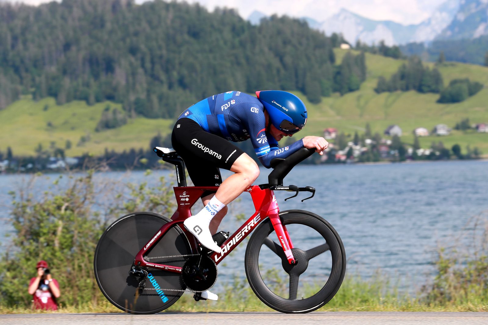 This time, there was no one to upset Stefan Küng. On the opening time trial of the Tour de Suisse, the Groupama-FDJ rider proved to be the best in front of his home crowd. To get the better of his main rivals Remco Evenepoel and Wout Van Aert, he still had to cover the 12,7-kilometer course at an average speed of 56.3 km/h. The Swissman beat the Belgian champion, his runner-up, by six seconds, and thus brought the team its first WorldTour victory of the season. On Monday, “King Küng” will head to Nottwil with the yellow jersey on his shoulders.