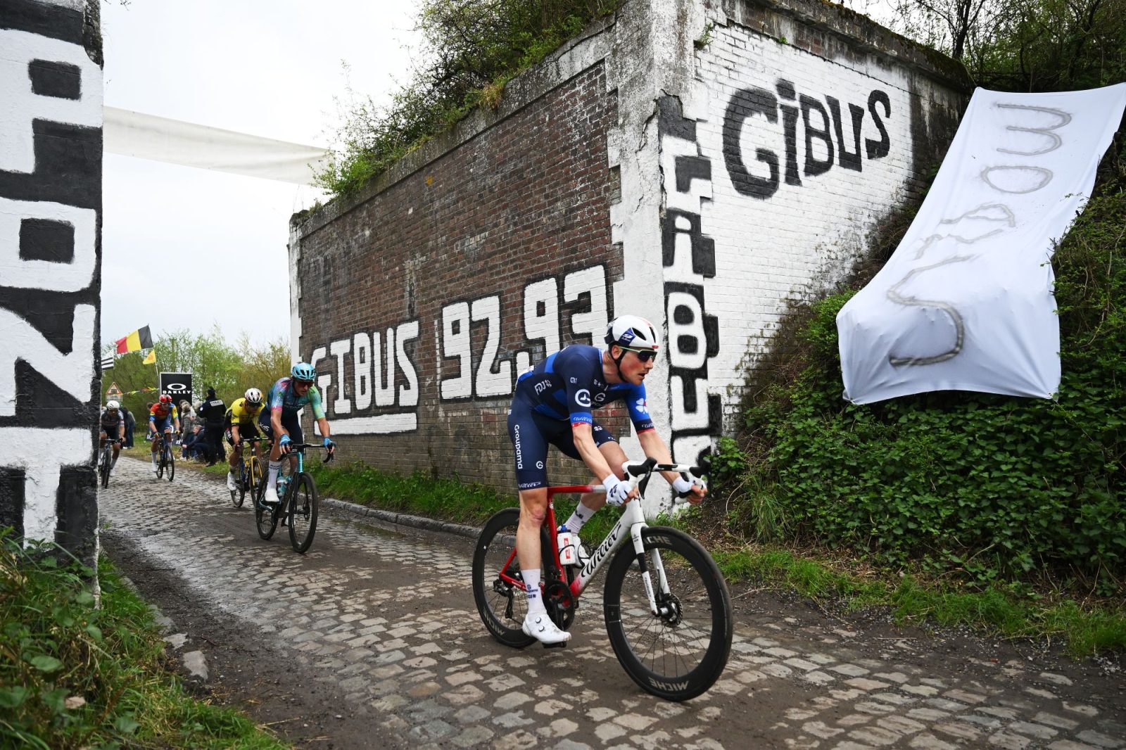 Stefan Küng could therefore enjoy a perfect escort approaching the Haveluy sector, a crucial one as it preceded the Trouée d’Arenberg. Following an initial burst of acceleration, twenty riders went away, and the Swiss rider was still surrounded by Clément Russo and Johan Jacobs. The latter even took advantage of a brief pause to anticipate the Trouée d’Arenberg, which he tackled a few seconds ahead of the favorites. However, slightly behind at the start of this iconic sector, Stefan Küng was forced to make a huge effort to close the gaps, while the favorites were already in action a few seconds ahead of him. “It was a perfect race until Arenberg,” commented Frédéric Guesdon. “Then things got complicated as Clément punctured, and Stefan found himself a step behind”. “The feeling was good, unfortunately, I did half of Arenberg on foot,” explained Clément. “My race ended there. I’m a bit disappointed because I felt I could have supported Stefan much further.” A few seconds behind the first group after Arenberg, the Swiss rider was unable to bridge across immediately as it didn’t ease off in front of him, with lots of accelerations.