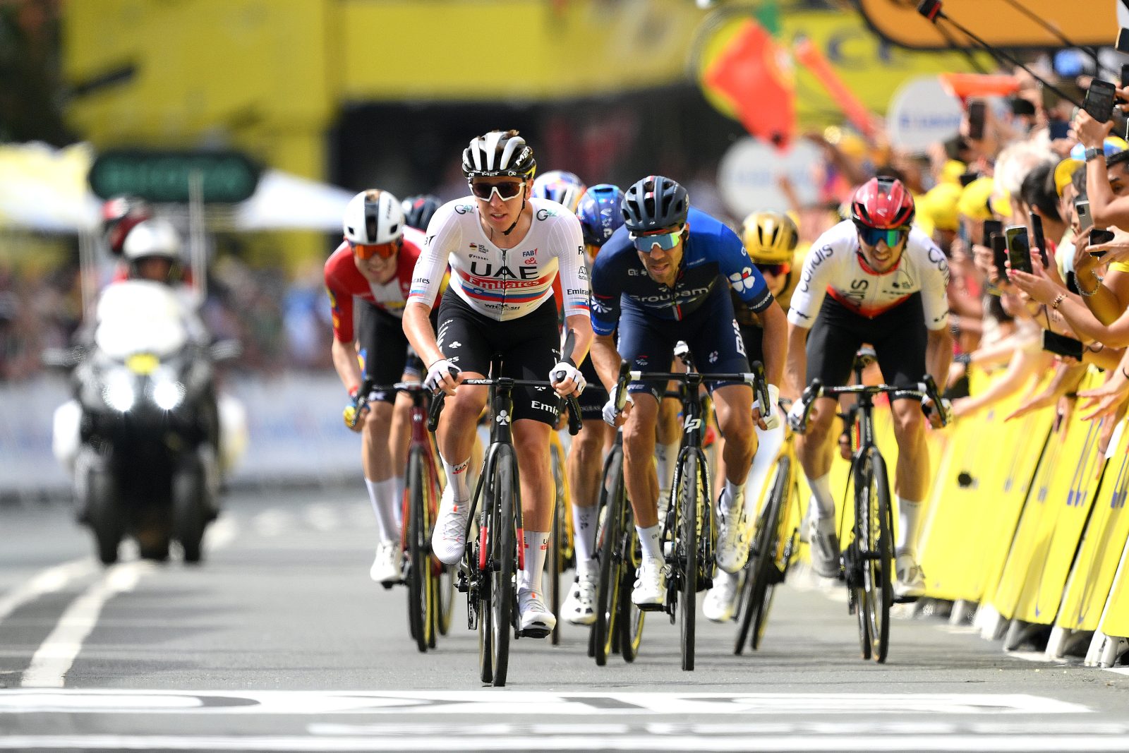 From the moment they arrived at their base camp in Vitoria-Gasteiz, the riders of the Groupama-FDJ cycling Team have been eager to pin on their first bibs of the 2023 Tour de France. They were also fully aware of the exceptional nature of the first race weekend of this 110th edition, with spicy routes that inevitably forced the peloton to be extremely vigilant. The first act of the July show, a loop around Bilbao, offered five KOM climbs – the first as early as the thirteenth kilometre; the last, above all, just ten kilometres from the finish line. But before approaching the key ascent that was the Côte de Pike (2 kms at 10%), it was a traditional scenario that set the pace for most of the day. Lilian Calmejane (Intermarché-Circus-Wanty), Simon Guglielmi (Arkea-Samsic), Pascal Eenkhorn (Lotto-Dstny), Jonas Gregaard (Uno-X) and Valentin Ferron (TotalEnergies) formed the very first breakaway of these three weeks of competition, but never had more than a 2’30” advantage.