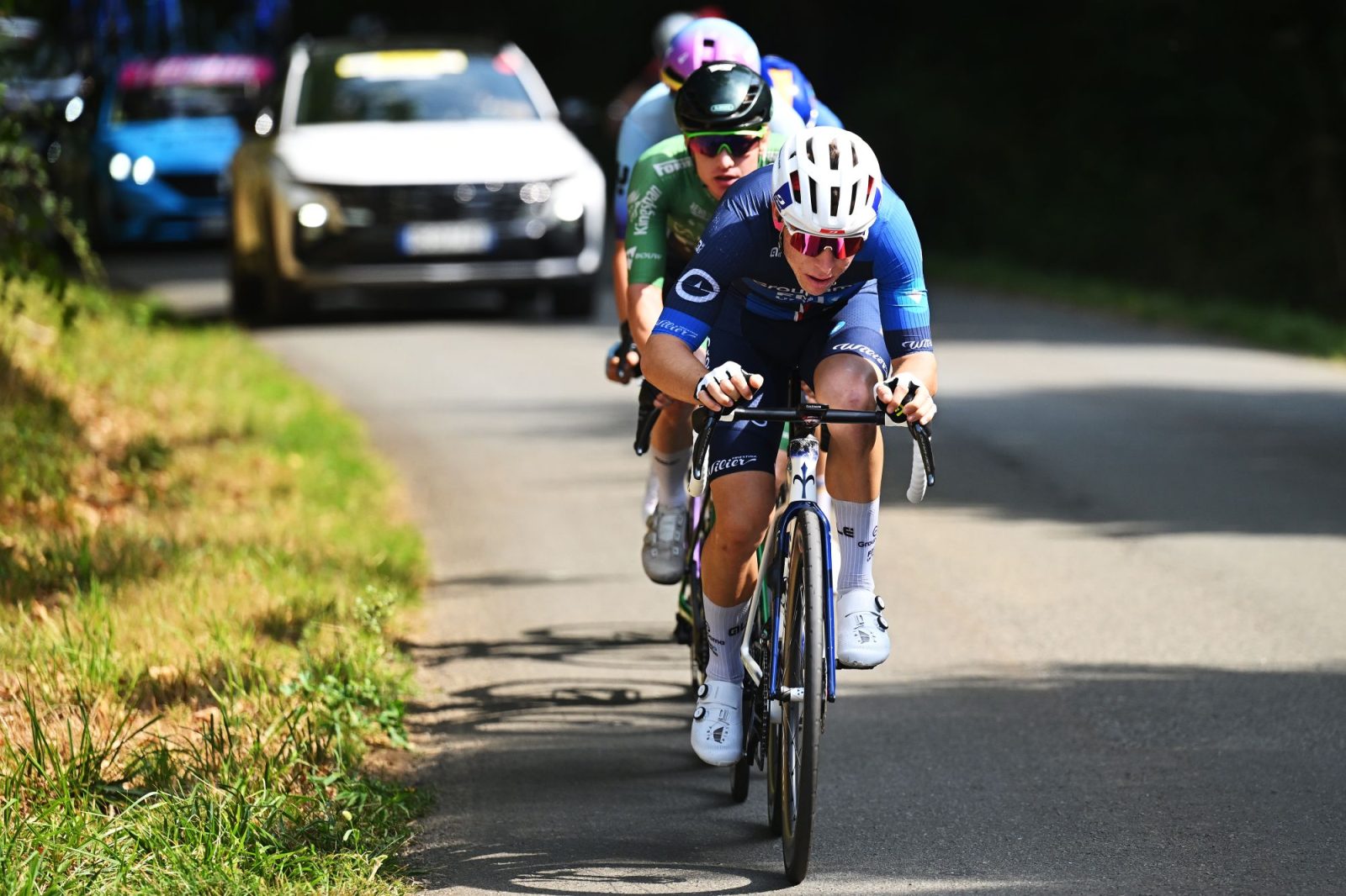 A peloton of exactly 100 riders took the start of the first stage of the Tour Poitou-Charentes en Nouvelle Aquitaine on Tuesday. And from Sauzé-entre-Bois, it didn’t take long for the race to settle. From the first few metres, four riders took the lead, including Lewis Bower for the Groupama-FDJ team. “That was the goal,” said Philippe Mauduit. “With Lewis in the breakaway, we didn’t have to pull behind, because everyone knows we have a team of fast guys with Cyril, Blake, Eliott, and Lewis. I didn’t want to put our guys to work too early in the race. Putting a rider in front is always a good thing for the team’s dynamic and combative spirit. All our riders in the peloton were able to benefit from Lewis’s work to stay well positioned all day. The goal was ultimately for Lewis to get the bonus seconds. In this race, we ride all day on small roads where it’s difficult to bring bottles and gels, and in such heat, it’s important to reach the riders as fast as possible. By winning the bonus points and being up there overall, it also allowed us to be in a better position in the convoy tomorrow!”